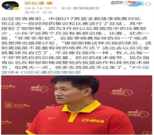 前国青男篮主教练李晓勇曾表示,郇思楠在美国没有专门的教练帮他练技术,与其如此还不如回到国内。