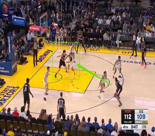 决胜节最后时刻,开拓者仅仅领先3分,两队每一个回合都至关重要。