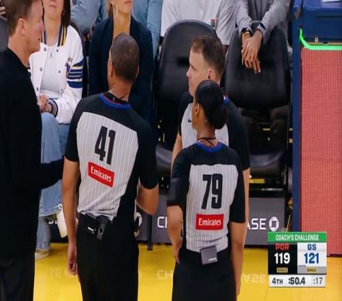 但奇怪的是,离杨瀚森仅有不到两米之遥的底线裁判,并没有做出任何表示。反倒是距离相对较远的裁判认为脚步有问题。