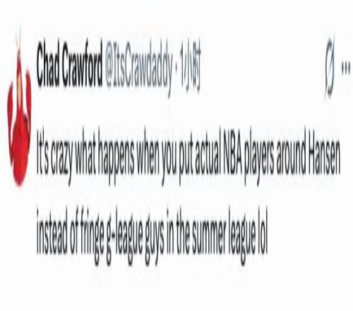 “当你把真正的NBA球员放在杨瀚森身边,而不是夏季联赛里那些边缘的G联赛球员时,发生的一切太疯狂了哈哈。”