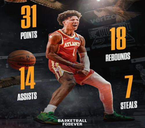 作为对比,上赛季的杰伦约翰逊:出战36场比赛,场均18.9分10.0篮板5.0助攻1.6抢断1.0盖帽,三项命中率50.0%/31.2%/74.6%,真实命中率56.9%。