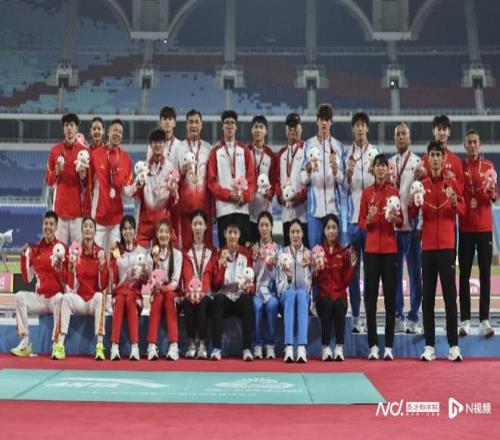 广东田径首金喜悦再来一次!4400米混合接力颁奖