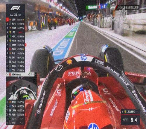 第25圈,勒克莱尔进站!出站后排在第九位,身处皮亚斯特里和塞恩斯之间。