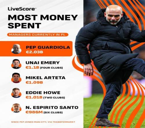 据德国转会市场网站统计,算上格伊的转会费,曼城在瓜迪奥拉任内的引援总支出达到19.3亿英镑(20.3亿欧元),在同行中遥遥领先。而且有意思的是,瓜帅刚上任时声称自己“不会教铲球”(原话是铲球也是一种天赋,所以我从不教铲球),解决的办法就是花了超过7亿英镑来买“有天赋的”后卫。