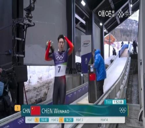 米兰冬奥会男子钢架雪车第2组:中国选手陈文浩1分52秒68,排第4