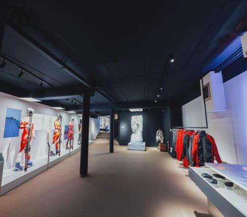 这个空间正如迪桑特在冰雪产业的角色和风格——“巅峰之家”不是用来“宣告”什么的,它只是安静地待在那里,见证着品牌与冰雪运动、与诸多国家队伍的长期同行。空间里人来人往,有人驻足观看历史墙上的竞赛服,有人坐在窗边看着雪山聊滑雪,瑞士高山滑雪队、德国雪车队等多支迪桑特赞助的国家队会来这里交流互动。没有刻意的品牌宣讲,一切围绕着滑雪自然而然地发生。