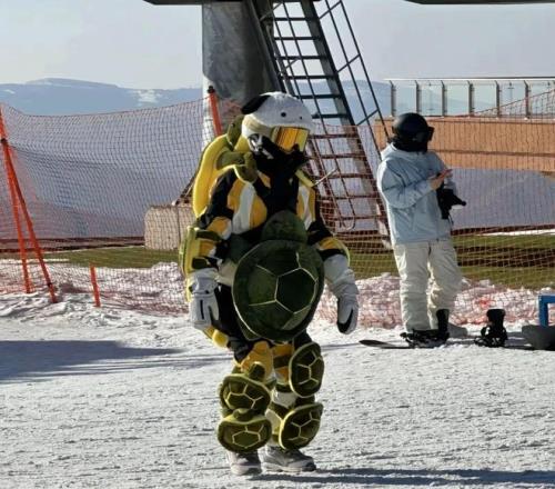 于是雪场上出现了一种“新物种”——浑身缠满小乌龟的移动毛绒玩具,远看可爱,近看心疼。